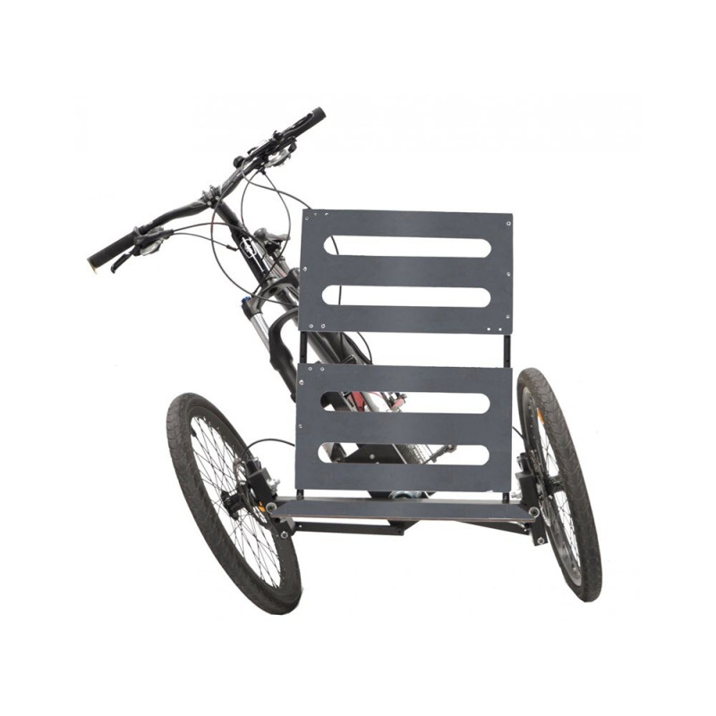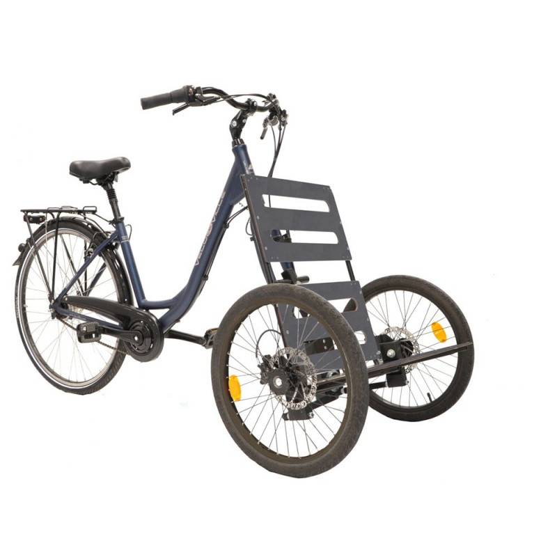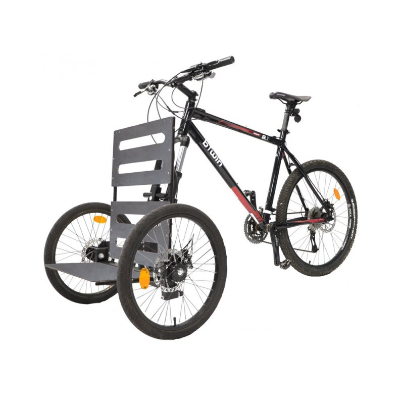 Met de Addbike kun je uw huidige fiets omvormen in een driewieler. Omdat het een speciaal kantelsysteem heeft, buigt de Addbike in de bochten mee. Hierdoor heb je het gevoel dat je met een tweewielige fiets rijdt in plaats van een logge driewieler. Op de voorwielen zijn hydraulische schijfremmen voorzien en kun je tot 40 kg gewicht plaatsten.