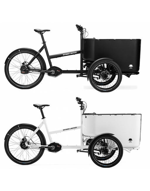 De Butchers & Bicycles MK1-E Gen. 3 wordt geleverd in twee modellen. Ze delen dezelfde gepatenteerde BUILT TO TILT™-technologie waardoor het veilig en super gemakkelijk te rijden is. Beide modellen zijn verkrijgbaar in mat zwart of wit. De laadbak wordt geleverd met of zonder transparante voordeur.