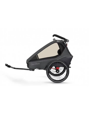 Kinderfietskar met wandel functie, vering en grote kofferruimte. Deze fietskar is geschikt voor twee kinderen.