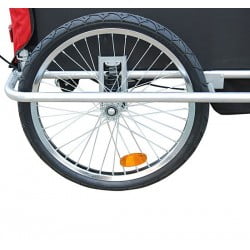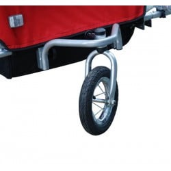 Het voorwiel is verwijderbaar en kan bevestigd worden aan de achterzijde, wanneer de kar als fietskar gebruikt wordt. Dus meer bagageruimte dan anders!