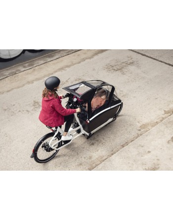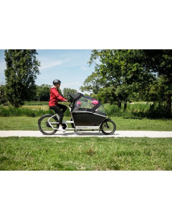 De voorkant van de unit biedt veel ruimte voor degenen die op de optionele extra bank vooraan rijden. Als uw kleintjes te jong zijn om alleen op de bank te zitten, geen probleem. De Urban Arrow huif PLUS biedt veel ruimte om in plaats daarvan een Maxi-Cosi-stoel vooraan te monteren. Op die manier kunt u zelfs uw jongste meenemen op al uw reizen.